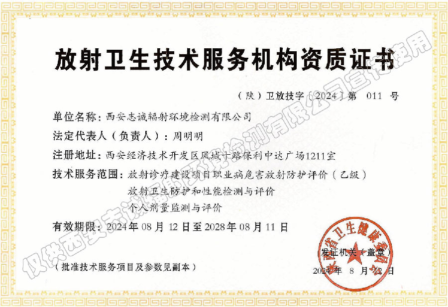 放射卫生技术服务机构资质证书